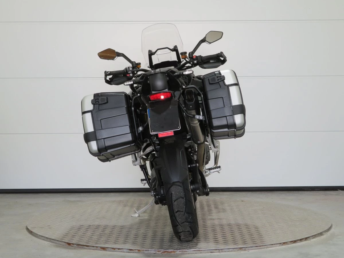 - Showa 200 mm Zentralfederbein mit semi-aktiver Dämpfung, mit automatischer elektronischer Vorspannungseinstellung und der neuen Active Preload Reduction. Je nach Gesamtgewicht von Fahrer, Sozius und Gepäck kann damit die Sitzhöhe, wenn das Motorrad zum Stehen kommt, um bis zu 20 mm abgesenkt werden. Dies bietet dem Fahrer mehr Komfort und Souveränität.